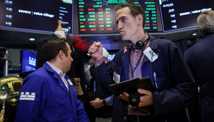Traders work on the floor of the New York Stock Exchange during morning trading on May 30, 2023 in New York City.