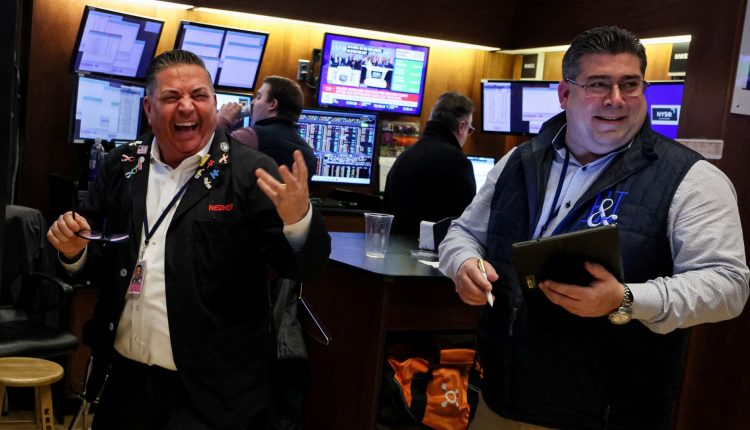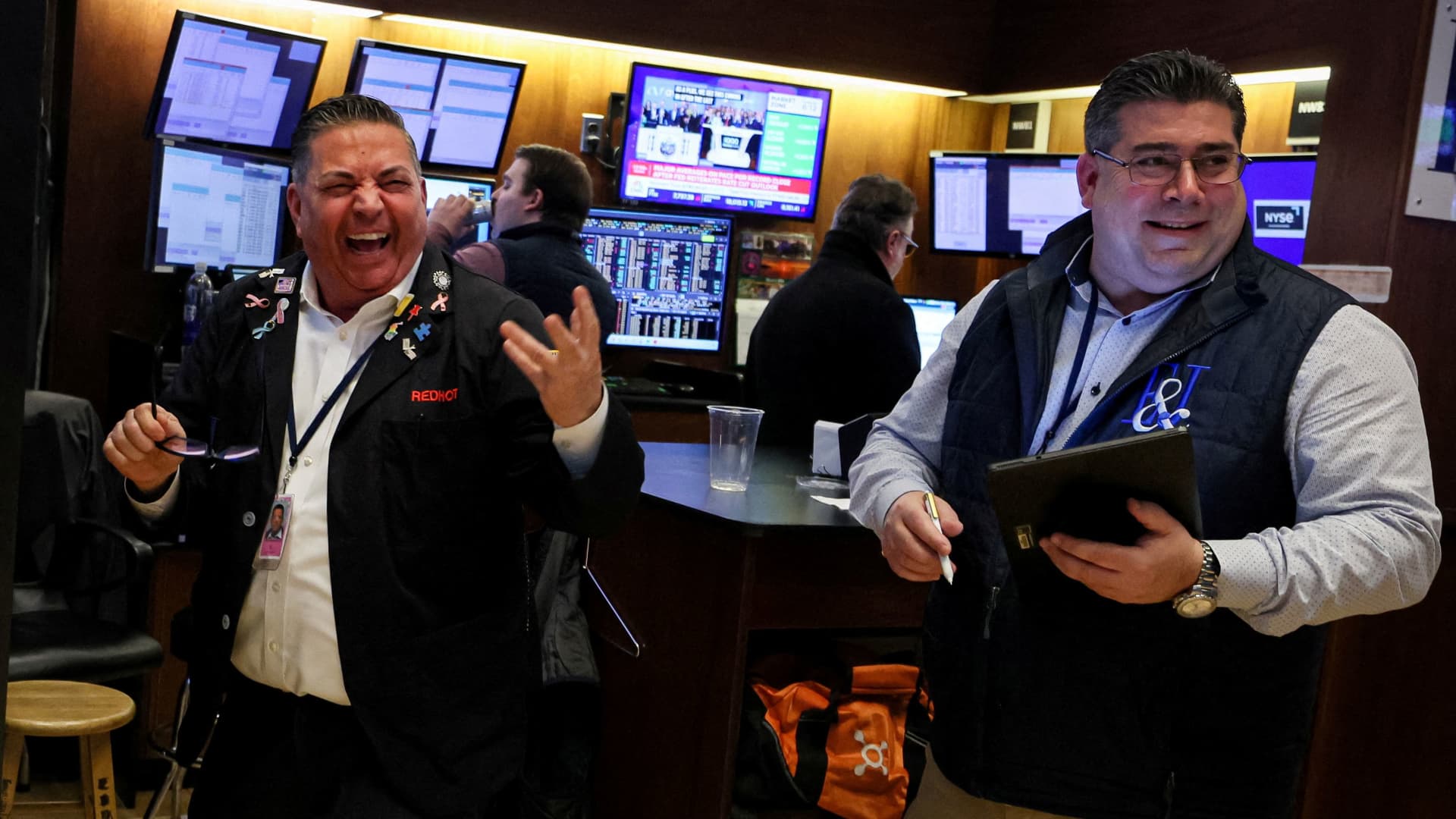 Traders react after the closing bell on the floor at the New York Stock Exchange on March 20, 2024.