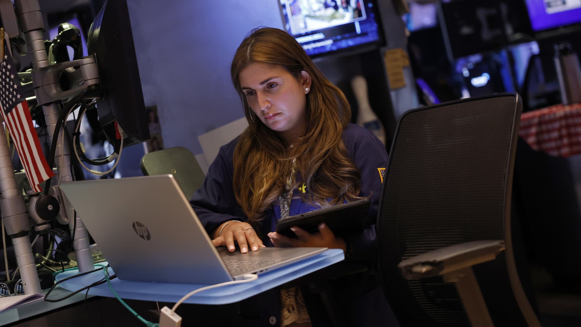 Traders work on the floor of the New York Stock Exchange during morning trading in New York City, April 29, 2024.
