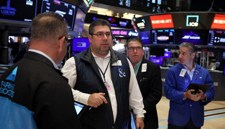 Traders and floor officials react to technical issues on the floor at the New York Stock Exchange on June 3, 2024.