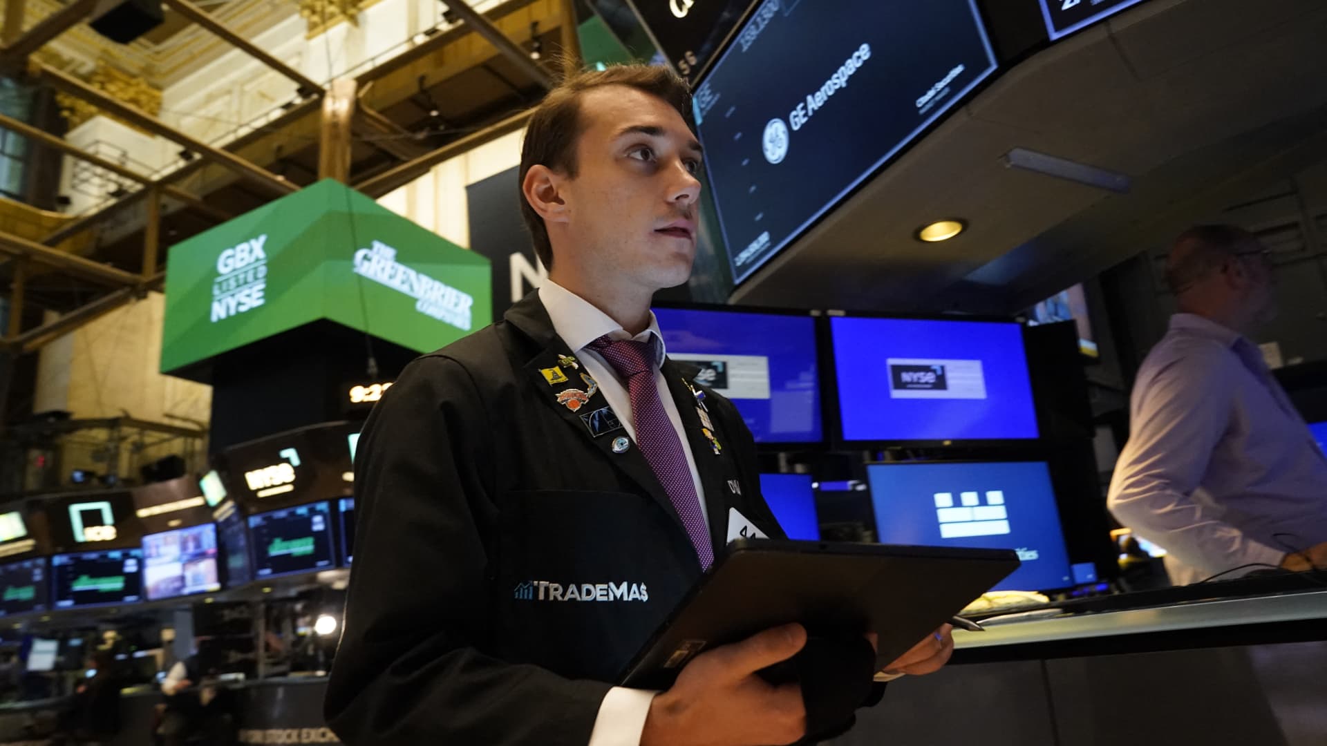 Traders work on the floor of the New York Stock Exchange (NYSE) in New York City on July 22, 2024.