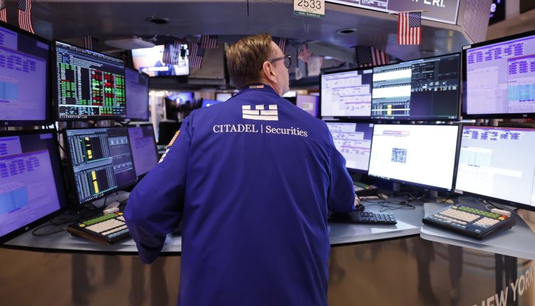 Traders work on the floor of the New York Stock Exchange during morning trading on February 23, 2024 in New York City.