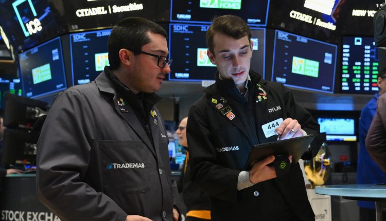 Traders work on the floor of the New York Stock Exchange (NYSE) during morning trading on January 11, 2024 in New York City.