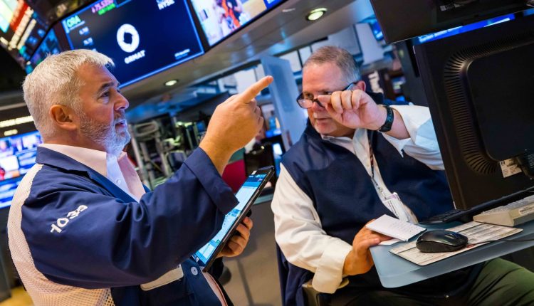 A trader works on the floor of the New York Stock Exchange.