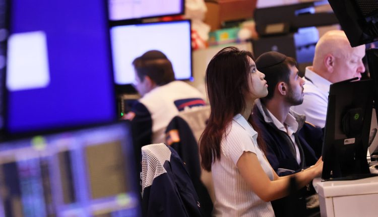 Traders work on the floor of the New York Stock Exchange during afternoon trading, July 18, 2023.