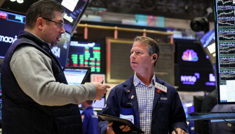 Traders work on the trading floor at the New York Stock Exchange (NYSE) in New York City, U.S., November 22, 2023.