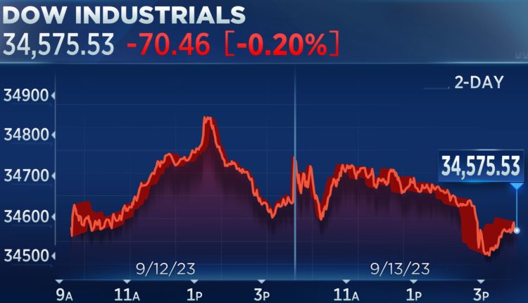 3M was the biggest laggard in the 30-stock Dow, dropping more than 5.7%. Caterpillar shares were lower by 2%. Meanwhile, Apple shares declined more than 1%, falling for a second day.