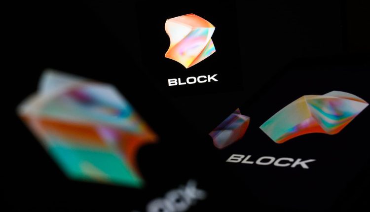 In this photo illustration, the logo for the US tech firm “Block” is displayed and reflected in a number of digital screens on March 03, 2023 in London, England.