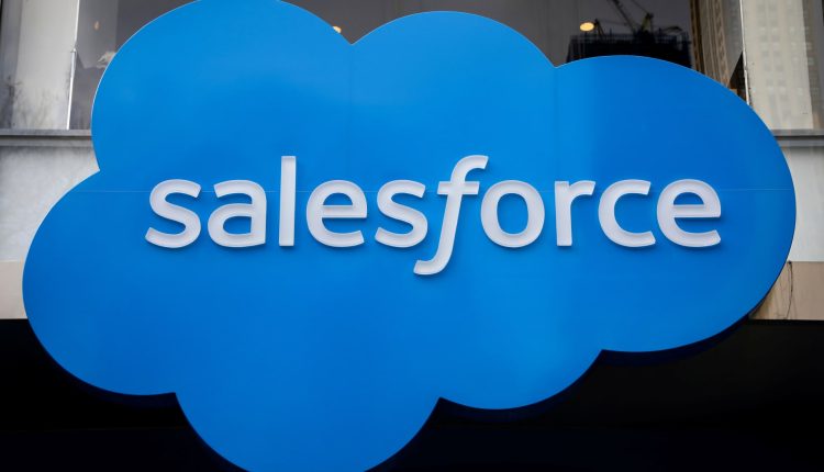 The logo for Salesforce is displayed on the Salesforce Tower in New York City on March 7, 2019.