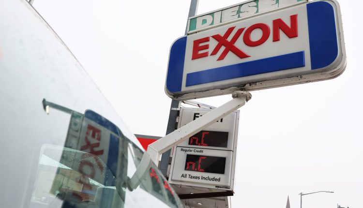 An Exxon gas station sign is seen on October 06, 2023 in the Brooklyn borough of New York City.