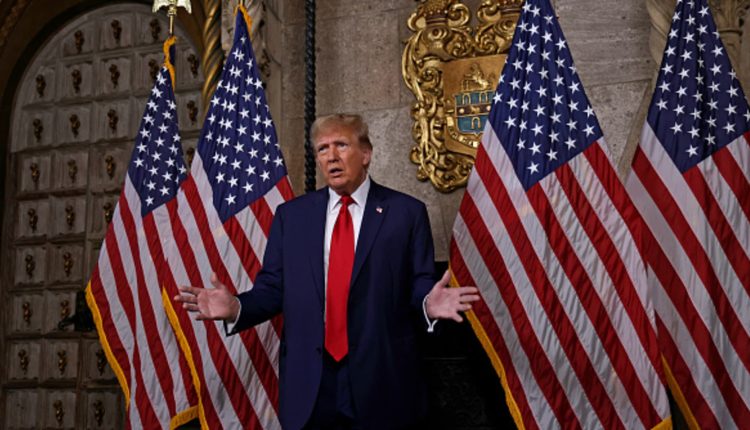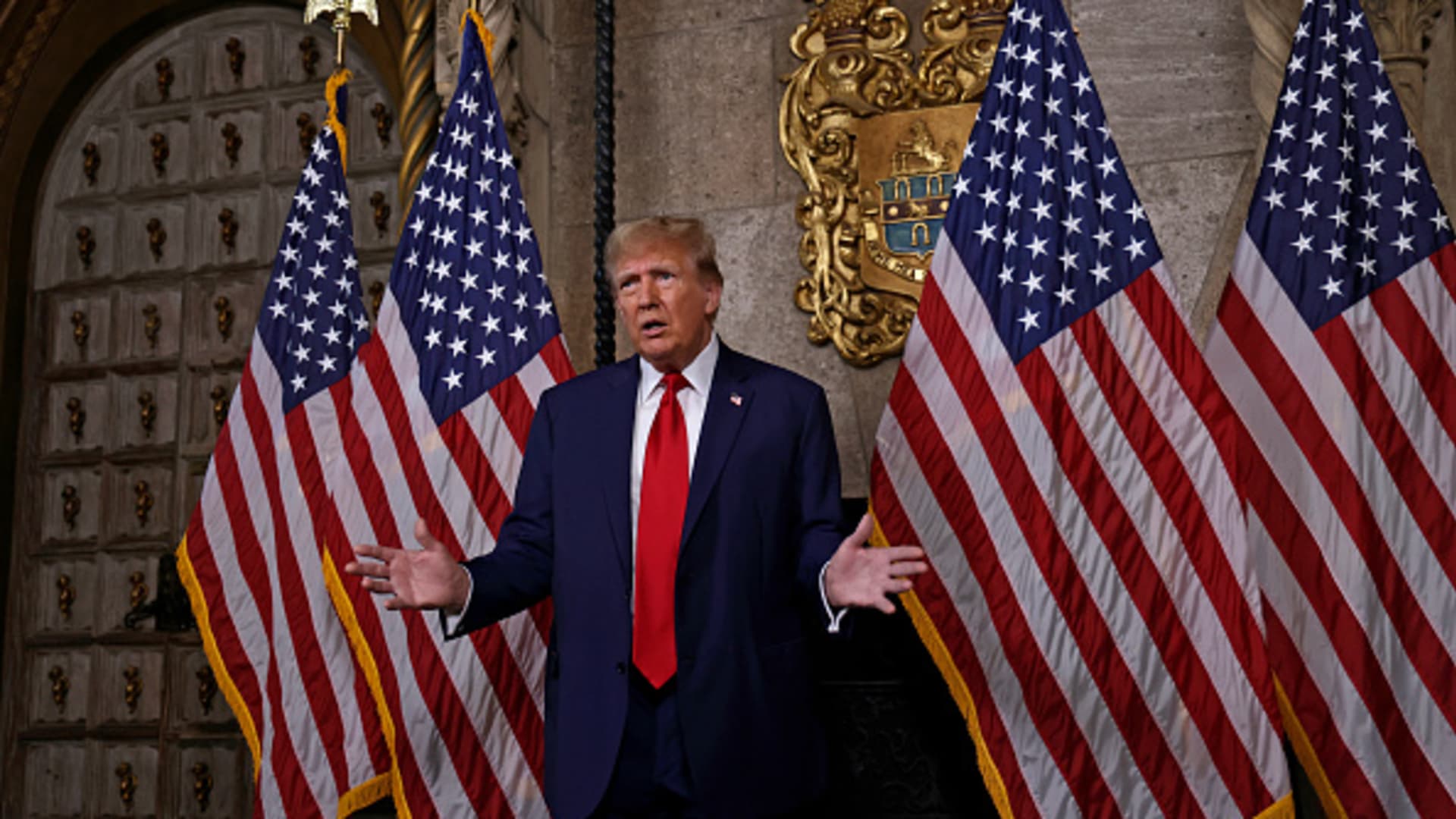 Republican presidential candidate and former President Donald Trump speaks in the library at Mar-a-Lago in Palm Beach, Florida, on March 4, 2024.