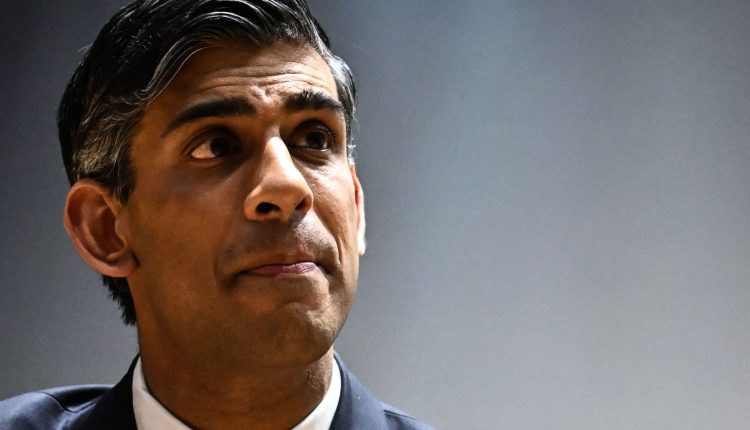 Britain’s Prime Minister Rishi Sunak speaks during the London Defense Conference, at King’s College, in central London, on May 23, 2023.