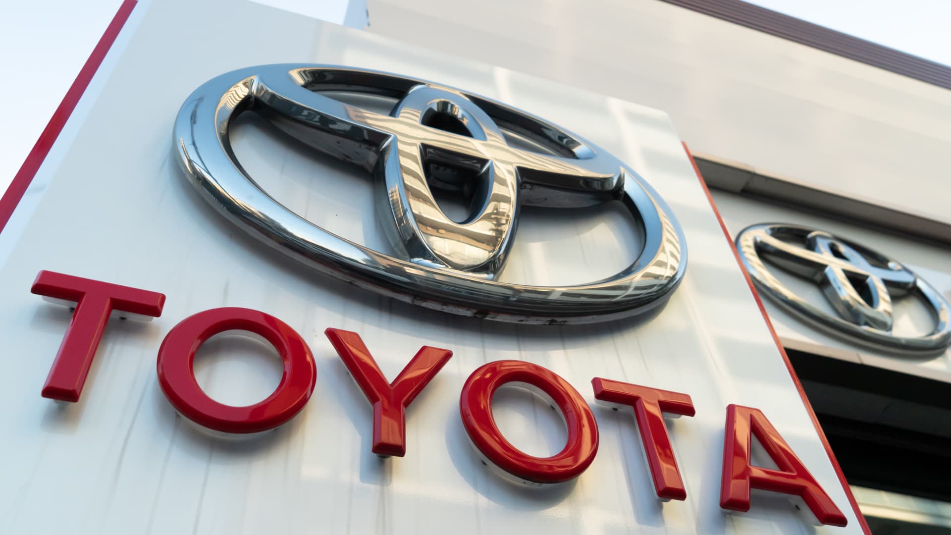A sign is displayed outside a Toyota Motor Corp. dealership on Jan. 30, 2024 in Tokyo, Japan. Toyota Chairman Akio Toyoda apologized Monday for massive cheating on certification tests for seven vehicle models as the automaker suspended production of three of them.