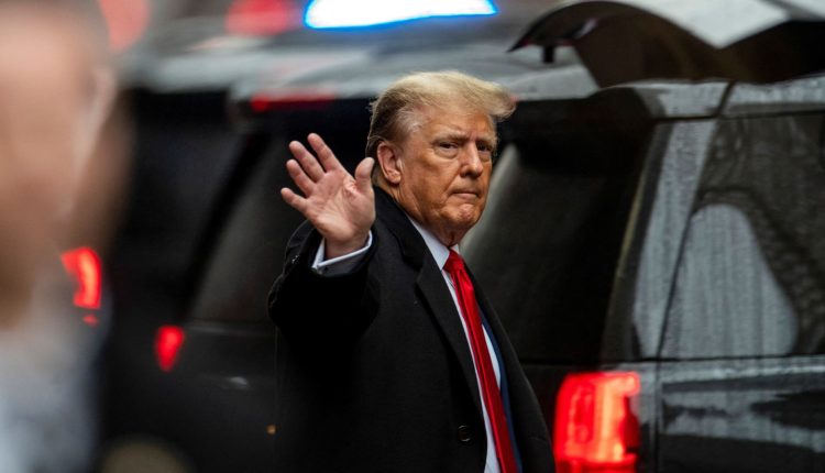 Former U.S. President Donald Trump waves to his supporters as he departs to attend his second civil trial in E. Jean Carroll’s defamation suit against him, outside Trump Tower in the Manhattan borough of New York City, Jan. 26, 2024.