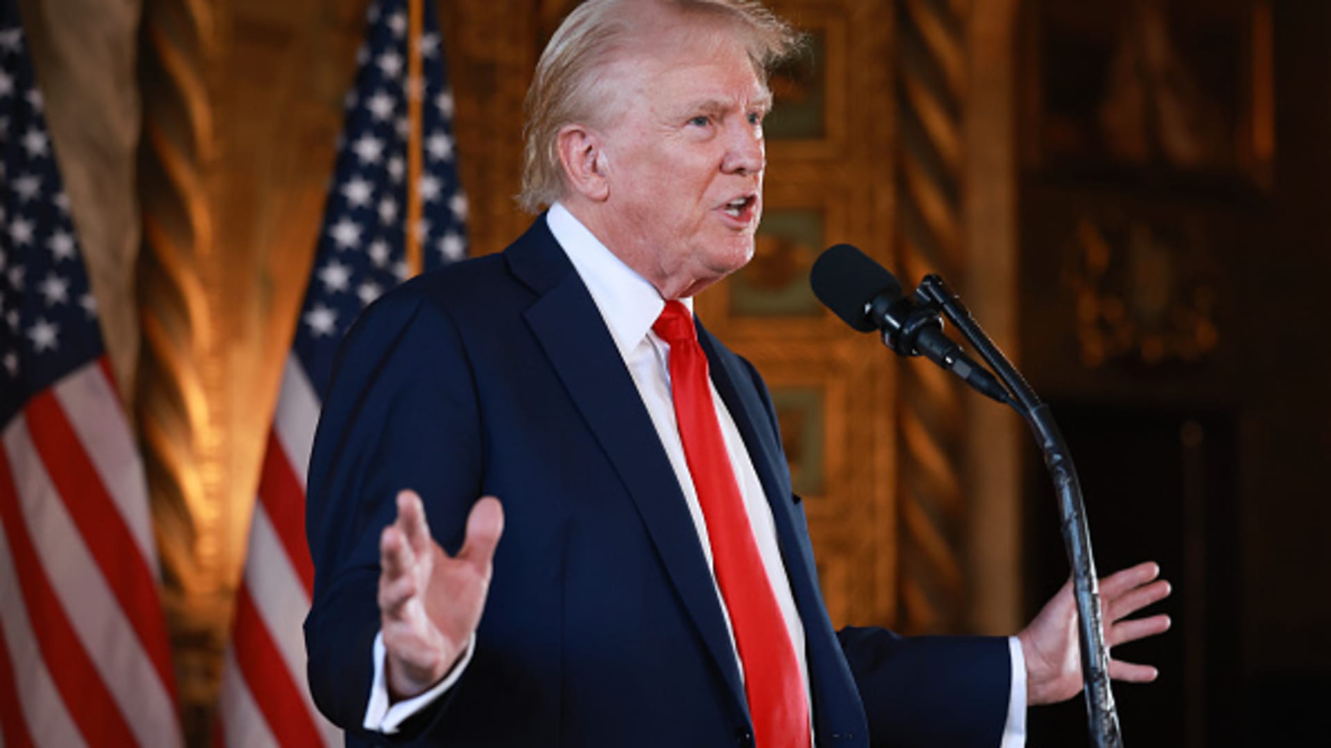 Republican presidential candidate former President Donald Trump speaks during a press conference at his Mar-a-Lago estate on August 08, 2024, in Palm Beach, Florida.