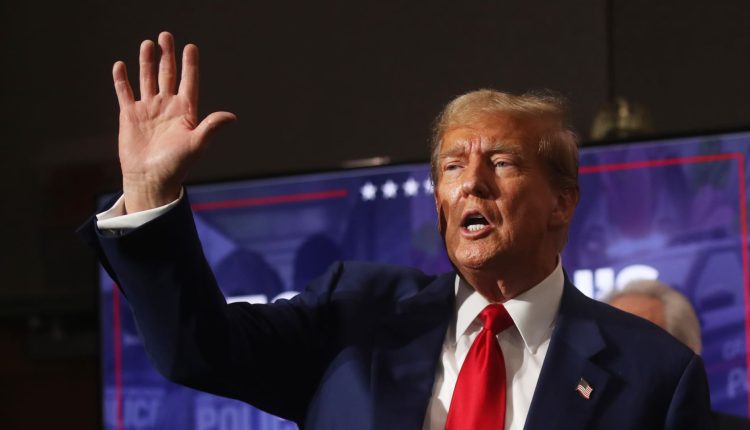 Former U.S. President Donald Trump speaks at a campaign event on April 02, 2024 in Grand Rapids, Michigan.