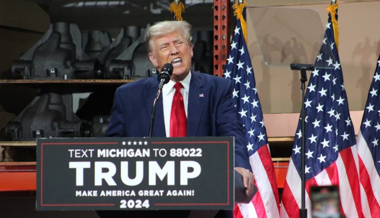 CLINTON TOWNSHIP, Mich. – Former President Donald Trump attempted to woo blue-collar autoworkers Wednesday night by criticizing electric vehicles and warning of the unsubstantiated demise of the U.S. auto industry, as he asked United Auto Workers members to encourage union leaders to endorse him.