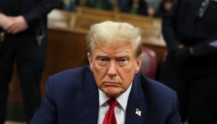 Republican presidential candidate and former U.S. President Donald Trump looks on in the courtroom, as his criminal trial over charges that he falsified business records to conceal money paid to silence porn star Stormy Daniels in 2016 continues, at Manhattan state court in New York City, U.S., April 23, 2024.