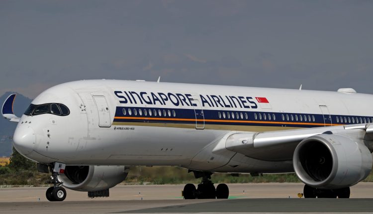 An Airbus A350-941 from Singapore Airlines is preparing to take off on the runway at Barcelona-El Prat Airport in Barcelona, Spain, on May 1, 2024.