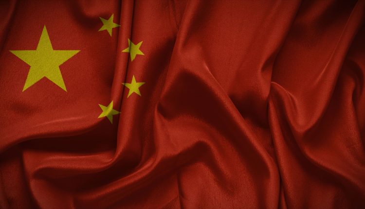 3d illustration flag of China. Close up waving flag of China.