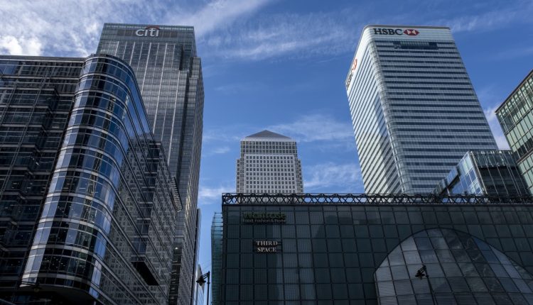 One Canada Square, at the heart of Canary Wharf financial district seen standing between the Citibank building and HSBC building on 14th October 2022 in London, United Kingdom.