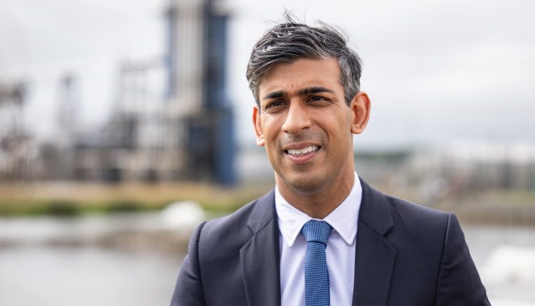 U.K. Prime Minister Rishi Sunak speaks to the media during his visit to Shell St Fergus Gas Plant in Peterhead on July 31, 2023 in Aberdeenshire, Scotland.