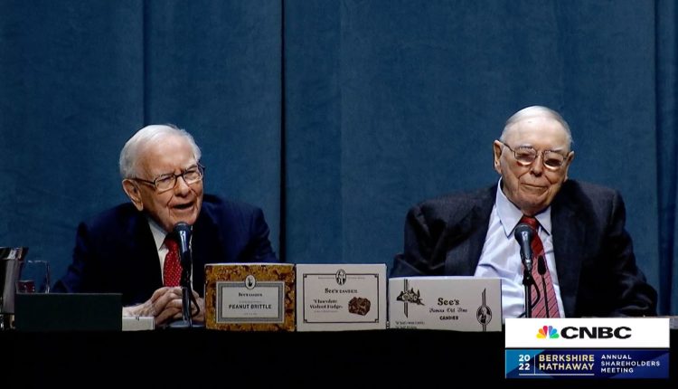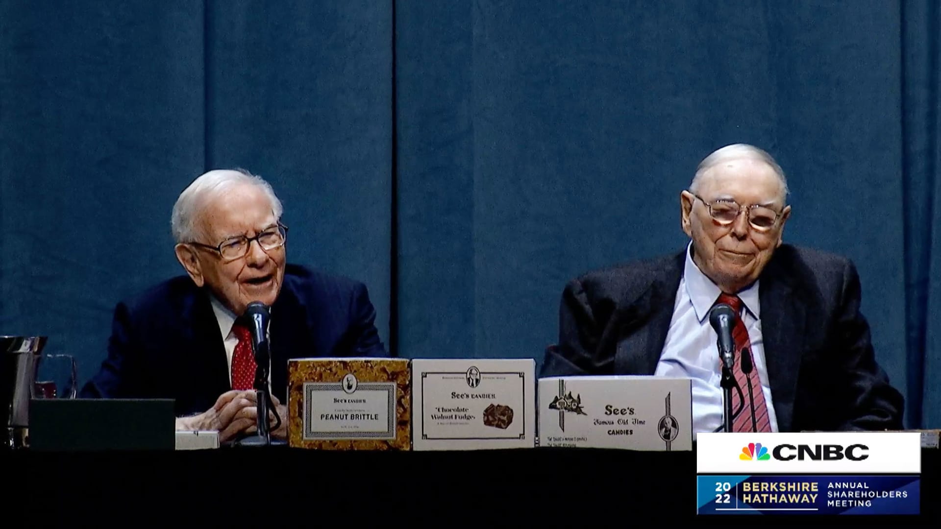 Warren Buffett and Charlie Munger at press conference during the Berkshire Hathaway Shareholders Meeting in Omaha, Nebraska, April 30, 2022.