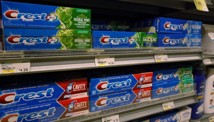 Boxes of Crest toothpaste owned by the Procter & Gamble company are seen on a store shelf on October 20, 2020 in Miami, Florida.