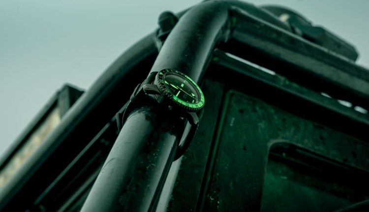 The 43mm Aurora features a GMT function, a 50-hour power reserve, water resistance down to 500 meters (50 ATM), an automatic helium escape valve and fortified shock protection. Its black DLC-coated stainless-steel Trip-Tick case is fitted with a unidirectional rotating 24-hour bezel featuring a polished sapphire inset. The bi-colored bezel serves as a day/night indicator, enhanced with luminous vibrant green Super-LumiNova that echoes the natural phenomenon’s captivating dancing ribbons of light in the night sky.