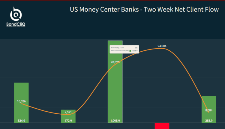 Money has flowed out of JPMorgan Chase, while investors put more money to work with Goldman Sachs than with the other four money-center banks.