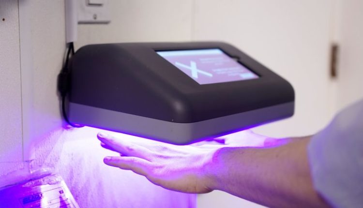 Within two seconds, the device can identify any residual contaminant on the hands and wrist using light fluorescence spectroscopy, an imaging technology already used in healthcare that utilizes safe non-UV LED lights.