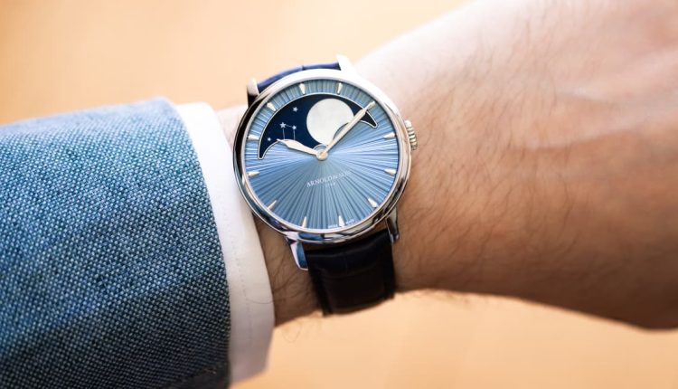 Inside, the hand-wound caliber A&S1512 is capable of tracking the lunar cycle so precisely that if it were kept regularly wound, it would take 122 years to accumulate a single day’s difference from the celestial reality.