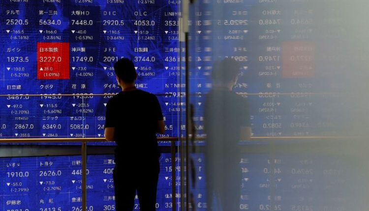 The Nikkei 225 fell as much as 7.1% in early trade, pushing its losses to 21% since early July. The index is poised to enter bear market territory, which is defined as a 20% pullback from recent highs. It later pared its losses to 5.8%.