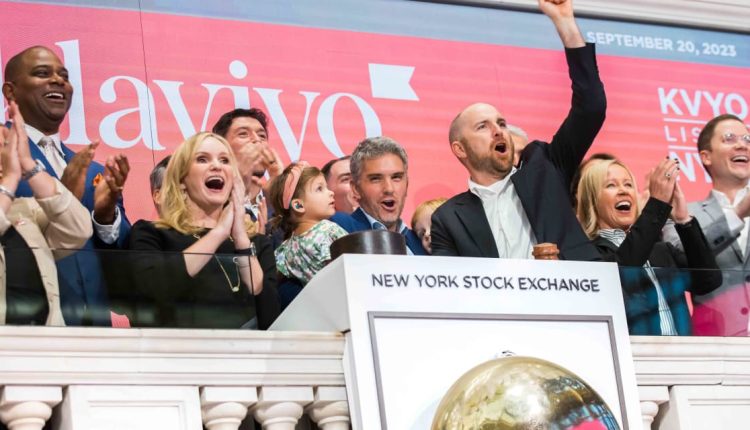 (ticker: KVYO), a Boston-based marketing software company, started trading at $36.75, soaring 23% above its initial public offering price of $30. At the close, the stock was up 9.2% to $32.76.