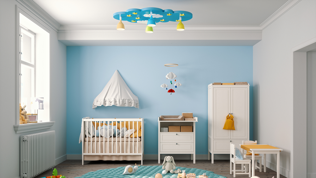 Breastfeeding moms may want to splurge on a glider to make feeding more comfortable. Or a baby changing station may need a diaper genie added to take care of odorous diapers. Lighting in the room is essential on those longer summer days, so blackout curtains are necessary for a good night’s rest.