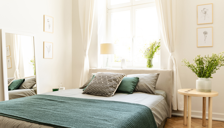 Adding an air-purifying plant can help transform your bedroom ambiance. Opt for greenery that is easy to care for and can thrive in your bedroom environment. Alternatively, you could use an air purifier to filter and purify the air in your bedroom; essential oils can also fill your space with a refreshing summer scent.
