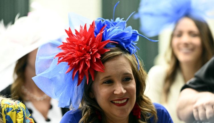Derby fans Eric Williams (left), of Chicago, and Skip Koepnick (right) of Wyoming, Michigan, wear their unique horse jockey and race horse hats at Churchill Downs prior to the running of the 127th Kentucky Derby in Louisville, on May 5, 2001.
