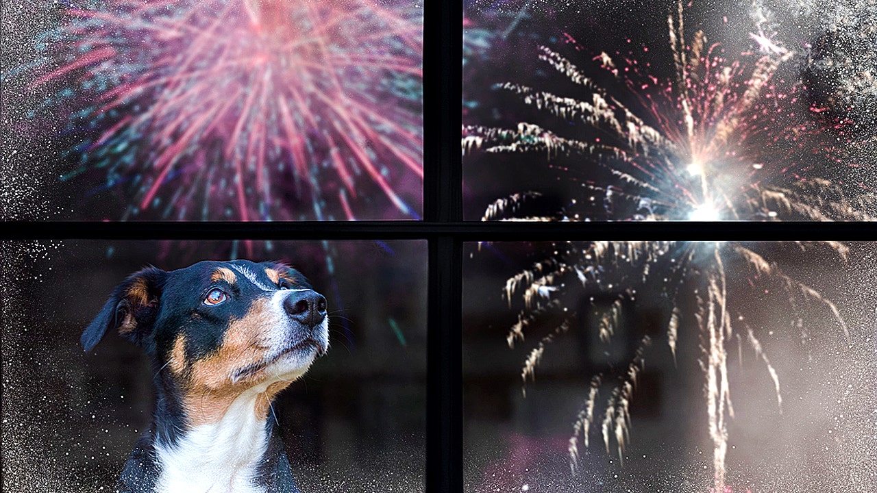 The trainer suggested playing the sounds of fireworks ahead of time while tossing treats or a favorite toy to your dog to help “make the sound a moment of fun” instead of one filled with fear and anxiety.