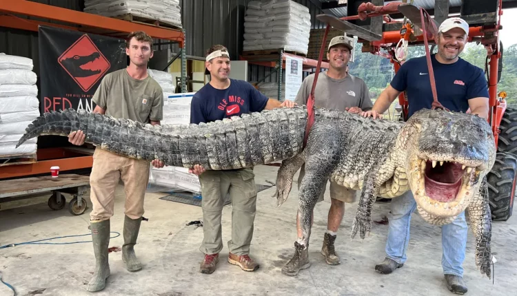 The Mississippi Department of Wildlife, Fisheries, and Parks (MDWFP) recognized the four hunters’ catch as the state’s new state record for the longest harvested male alligator on Saturday, Aug. 26, in a Facebook post.