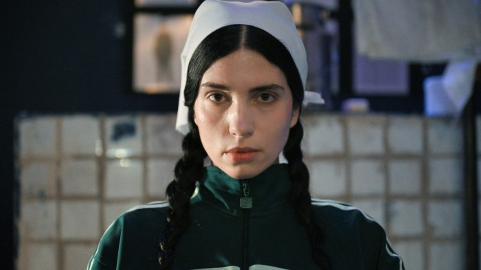 On day three, Saturday, Tolokonnikova is wearing a green track suit pinned with an identification tag, the same one she wore during the two years she spent at a penal colony in Russia. Nearby is a sewing machine. During her prison sentence, punishment for gatecrashing Moscow’s largest Orthodox church to perform a 40-second “Punk Prayer” criticising Vladimir Putin, Tolokonnikova spent up to 16 hours a day sewing. Since 2023, she has been on Russia’s most wanted list.