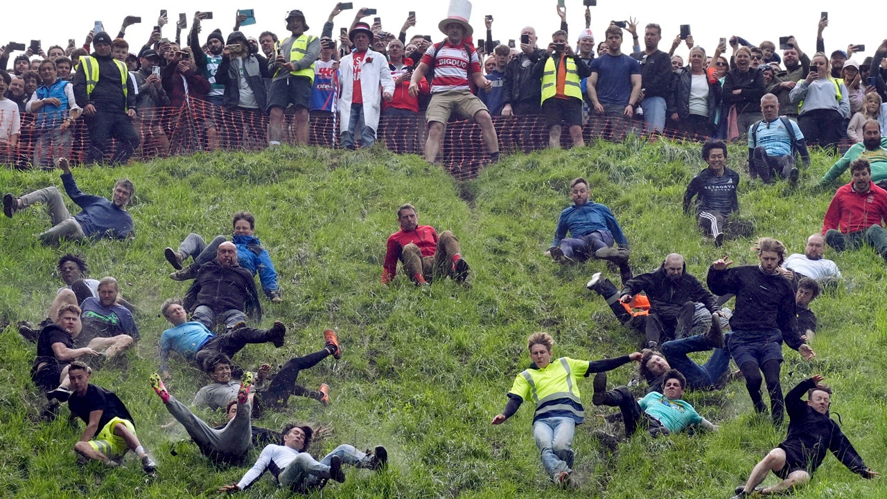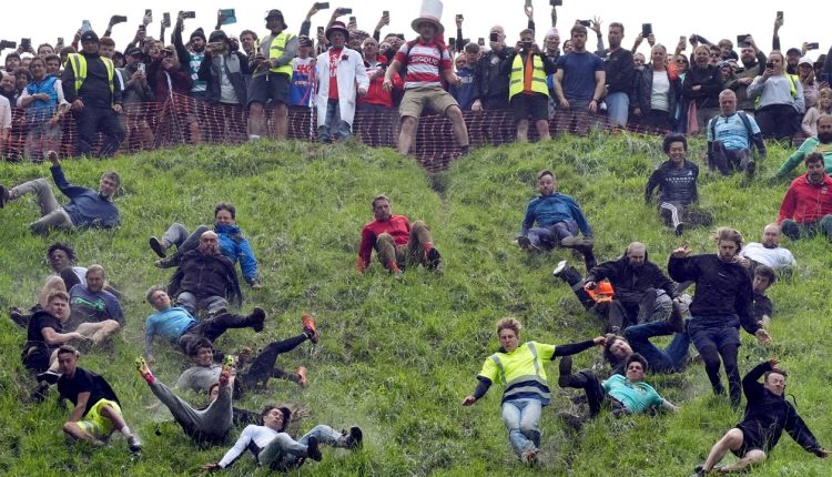 Dairy-loving daredevils threw caution to the wind Monday for one of Britain’s most extreme annual events: cheese rolling.