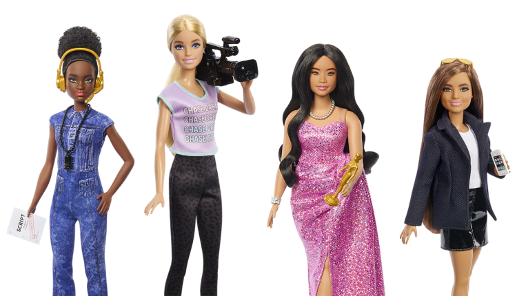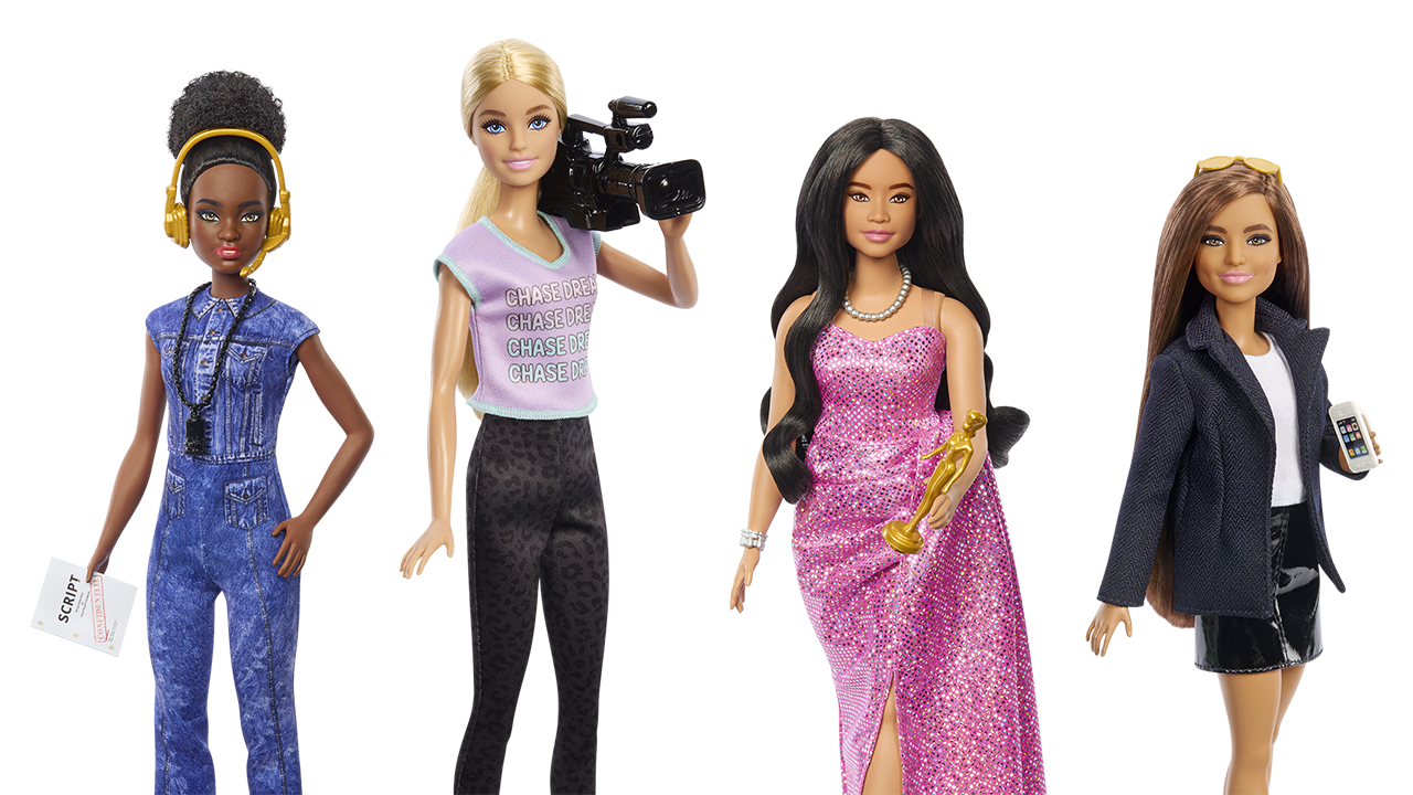 The four new Barbie dolls represent four different film careers: studio executive, director, cinematographer and movie star.