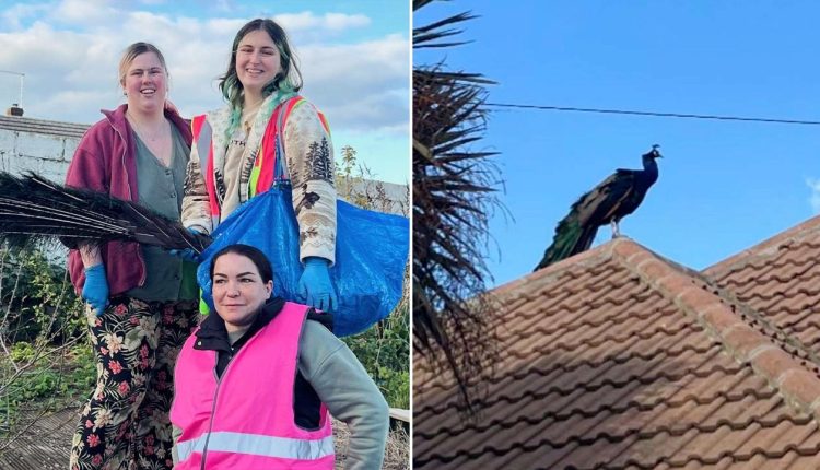 When the three women arrived in Gravesend, the peacock was on the roof of a bungalow — so they started playing peahen noises in an effort to encourage him to come down.