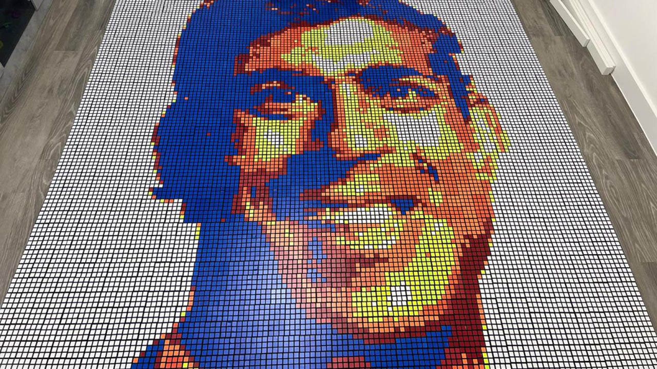 Soni, who can now solve the well-known puzzle in mere seconds, is taking his talents to a larger scale by making portraits out of the colors on the cube.