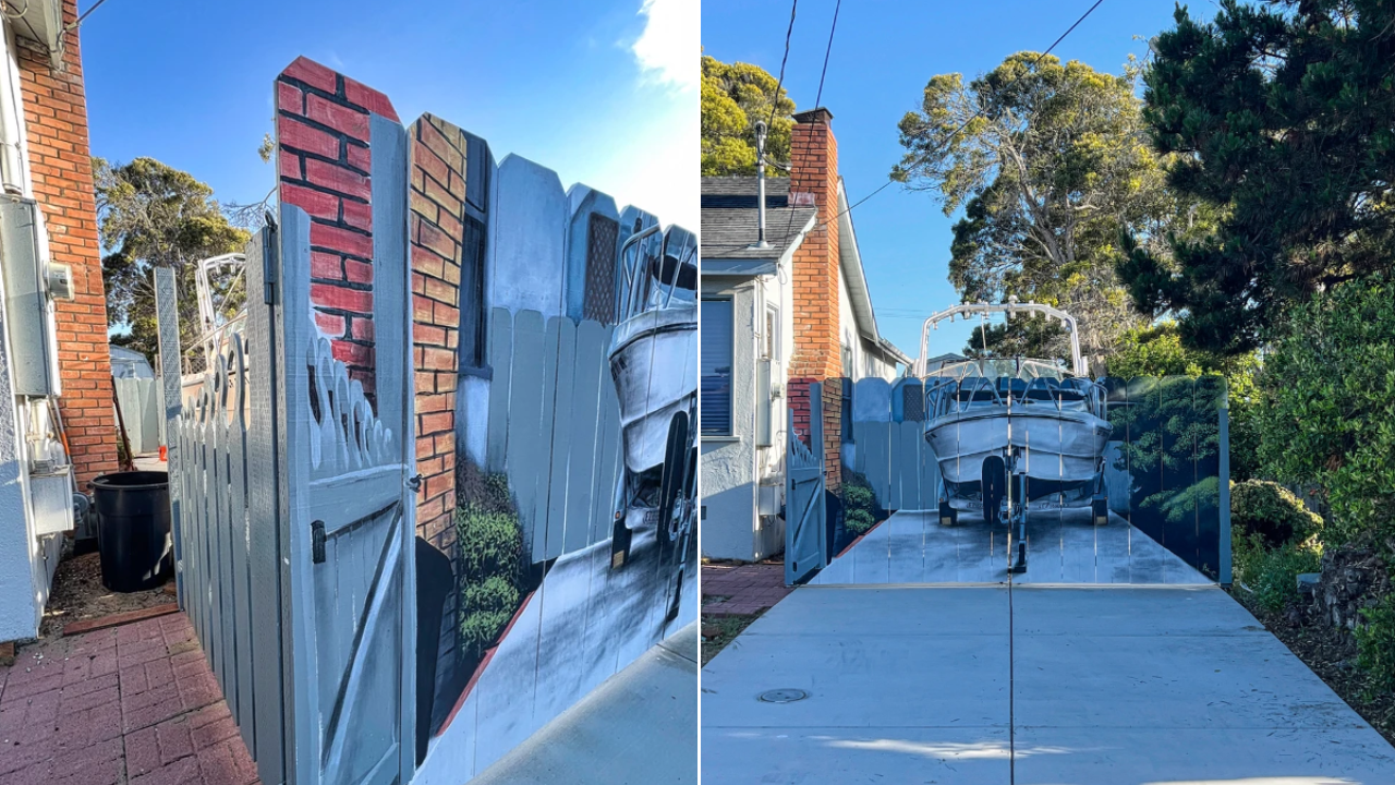 “Seaside resident got creative when complying to the municipal code to hide his boat with a fence,” the post’s caption read. “He turned lemons into lemonade and had his artist neighbor paint a hyperrealistic mural of the boat on the fence itself!”