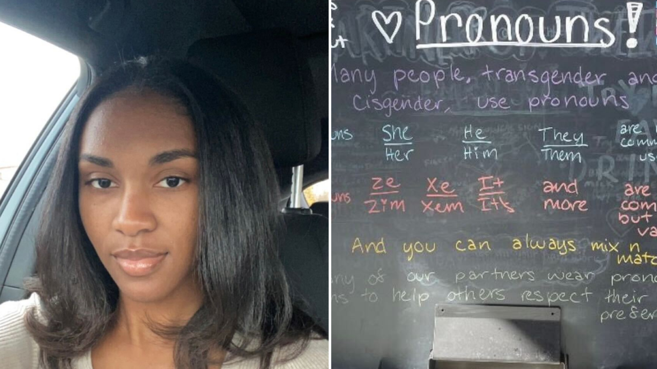 Trice said that a few of her coworkers agreed that a glass wall describing different sexual orientations wasn’t family-friendly. Another aspect of the Pride Month display was a chalkboard that included fringe pronouns like ze/zim, xe/xum – and even it/its.