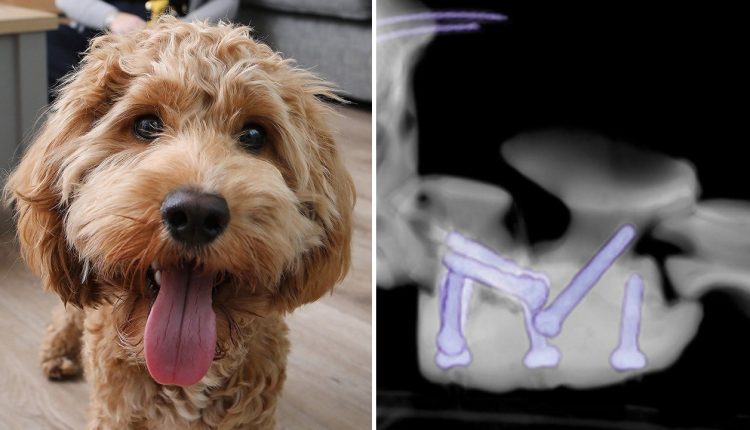 Jones told SWNS that her puppy, a cross between a cocker spaniel and a poodle, began yelping and panting on the floor one day for an unknown reason.
