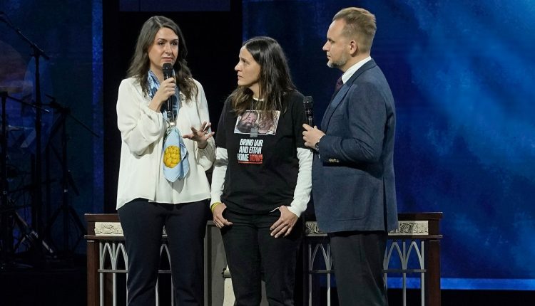 Dalia Cusnir and Liel Slifer joined pastor Jeremiah Johnston at Prestonwood Baptist Church’s Jan. 28 services to share their stories and remind others of the ongoing plight of their beloved relatives.