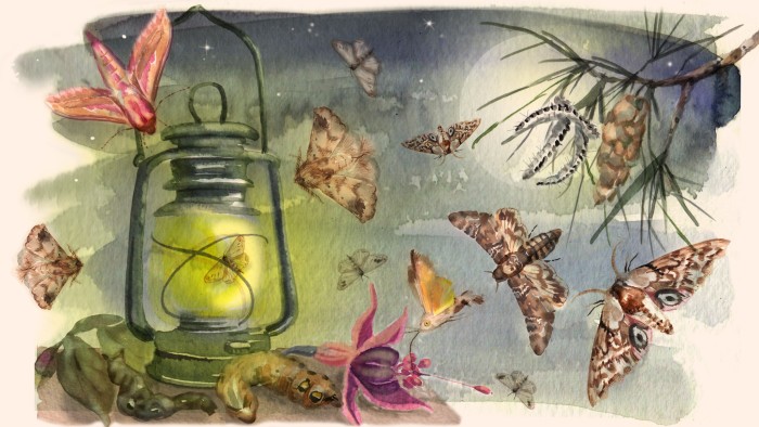 You can attract moths to your garden or balcony with a bright torch pointed at a white sheet hung on a washing line. Or go one better and invest in a light trap. On darker nights, moths will spiral into it as they mistake the lightbulb for their usual navigational aid, the moon. It is fun seeing what moths the trap contains before releasing them in the morning, particularly if nature-curious kids participate.