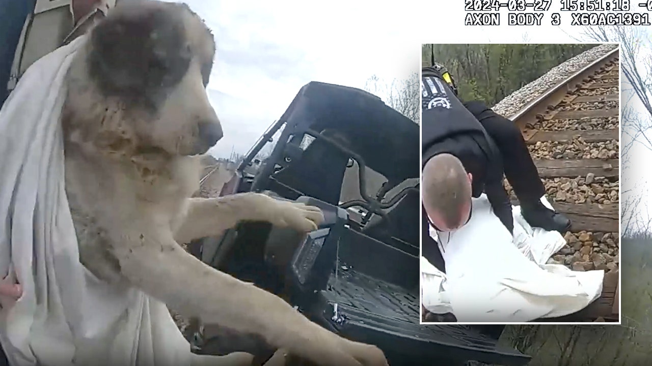 Bodycam footage shows one deputy carefully picking up the dog while another assisted and said encouraging words.